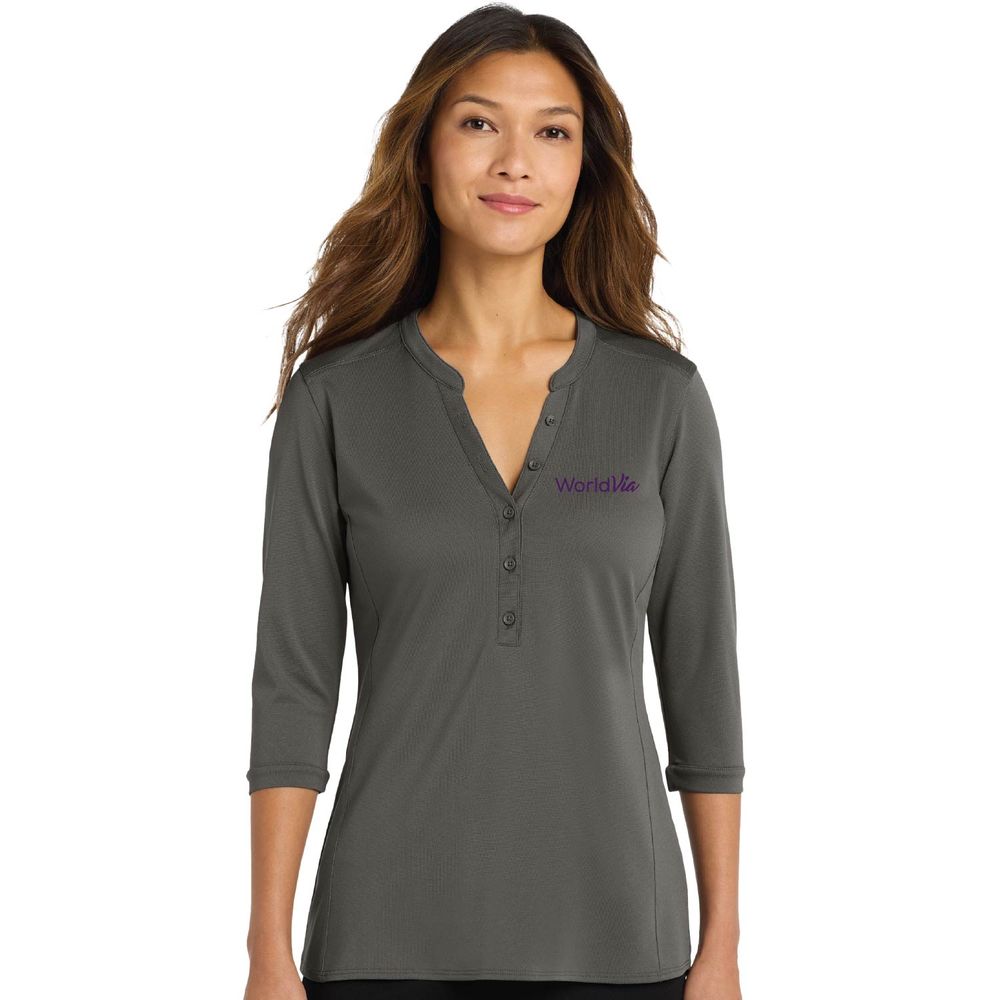 This snag-resistant pique elegant tunic polo shirt will quickly become your first choice for classic corporate uniforming. It performs with exceptional moisture wicking and resists UV rays—making it a great out-of-the-office look, too.